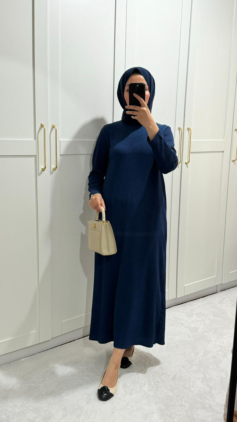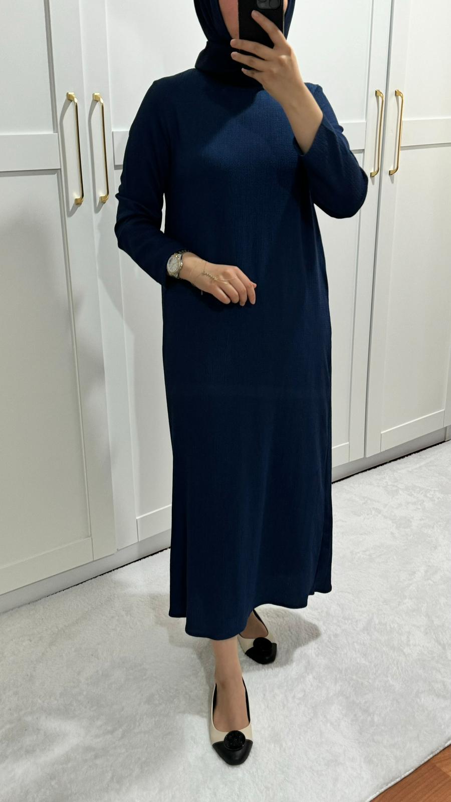 Lacivert Kırınkıl Elbise