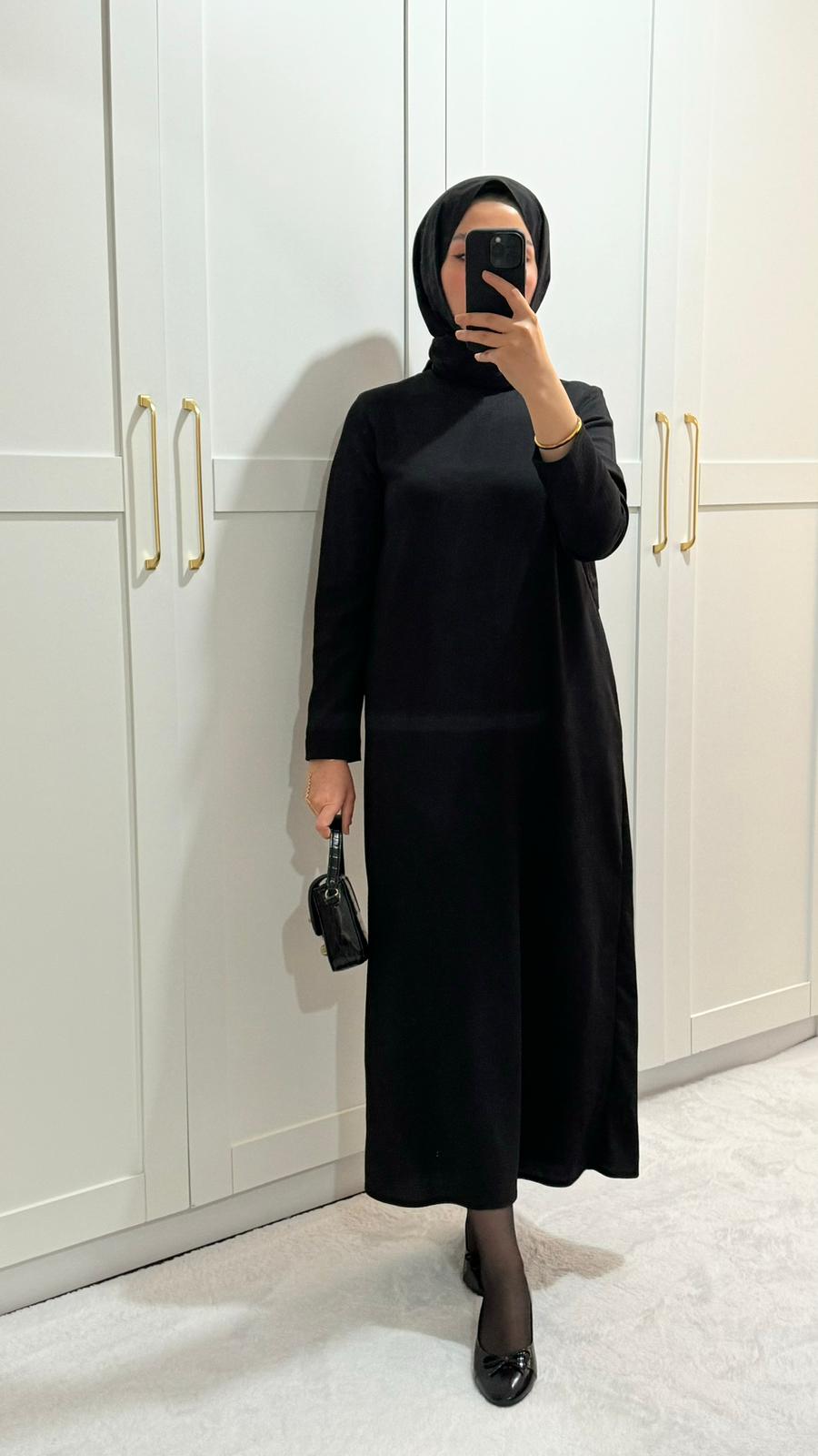 Siyah Kırınkıl Elbise