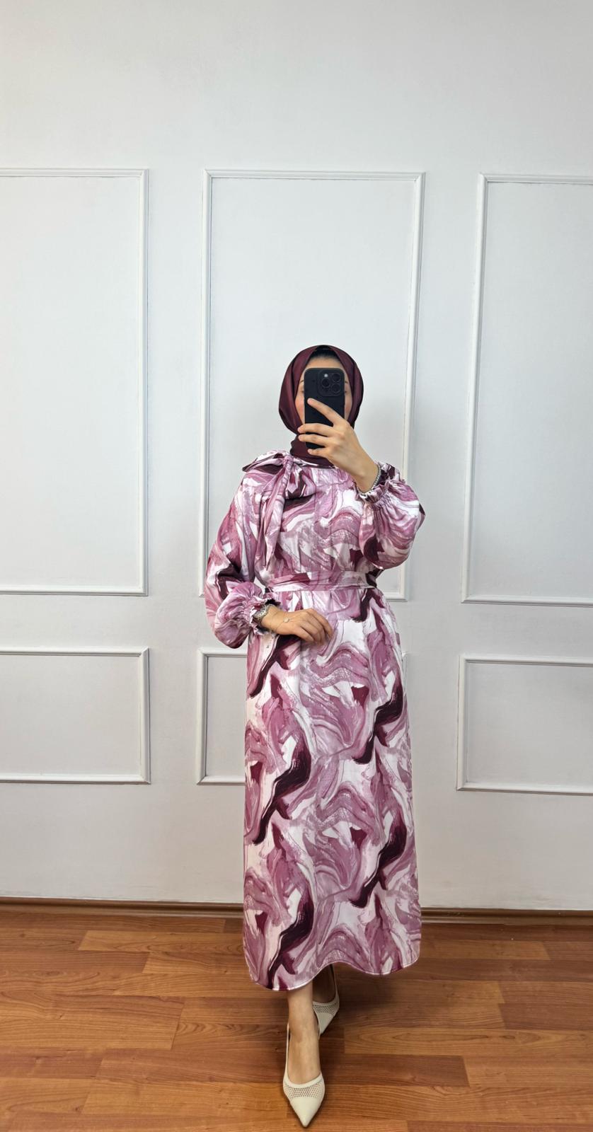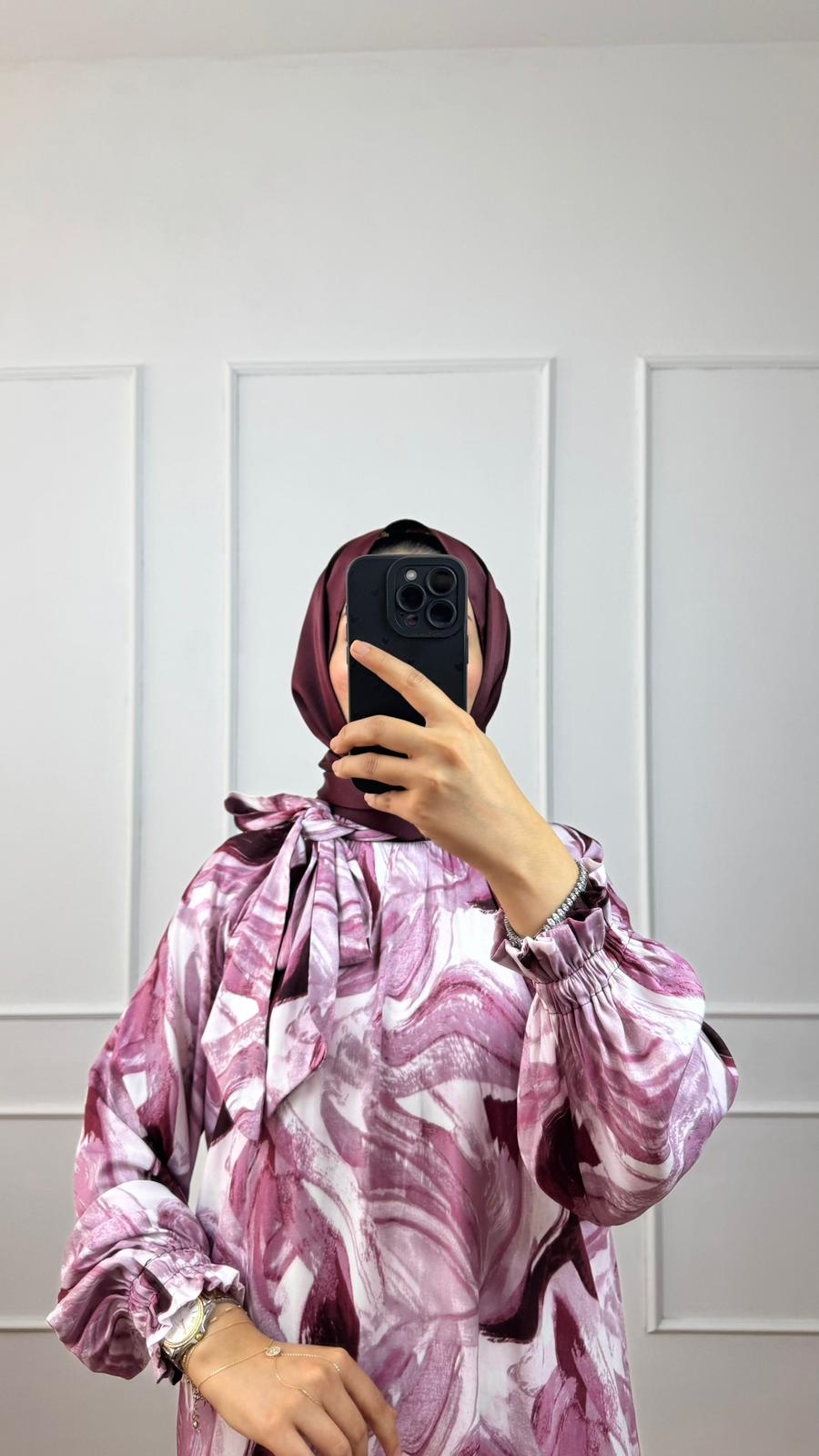 * Ürün ipek kupra kumaştır. Ürün akışkan formu, fiyonk yaka detayı ve modern desenleriyle hem günlük kullanıma hem davetlere uygun zarif dokudadır.